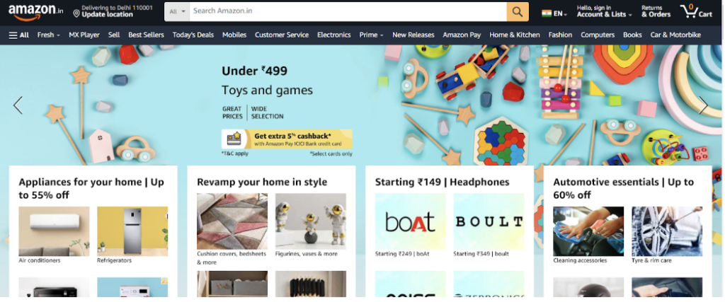 Website language localization and localizing other elements helps you connect with your target audience, it gives you an edge over competitors who haven’t yet made the extra effort to localize, and helps you tap into newer markets. As per a CSA survey 87% customers will not make a purchase from a website that’s available in English only. The same survey suggests 73% of customers want to read product reviews in their language. Amazon, one of the largest ecommerce marketplace globally is a testament to how localization can enable a brand to expand into newer markets and also retain them. Their India and US website looks remarkably different. But they haven’t stopped there. Amazon has been sensitive towards the linguistic diversity of India which is why they have further localized Amazon India’s website to support a plethora of Indian languages.